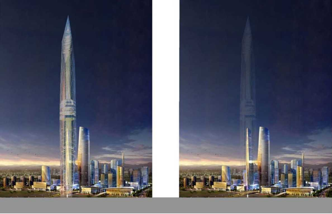 ناطحة السحاب المخفية في كوريا المعروفة باسم برج المدينة ، سيكون بها خداع بصري للمبنى ويمكن من خلال تصميم الواجهة و التكنولوجيا الفائقة والتي تشمل أجهزة العرض و الكاميرات المانعة لتسرب الماء مع موقع استراتيجي على السطح الخارجي . سوف تقوم الكاميرات بالتقاط الصور في الوقت الحقيقي من المنطقة مباشرة وراء البرج . وبعد ذلك يتم جمع تلك الصور رقميا في البانوراما والمتوقعة مرة أخرى على سطح المبنى . في أوقات معينة من اليوم ، سوف يشعر المارين بعدم وجود المبنى وسوف يقومون بالبحث عليه من خلال الجوانب الآخرى