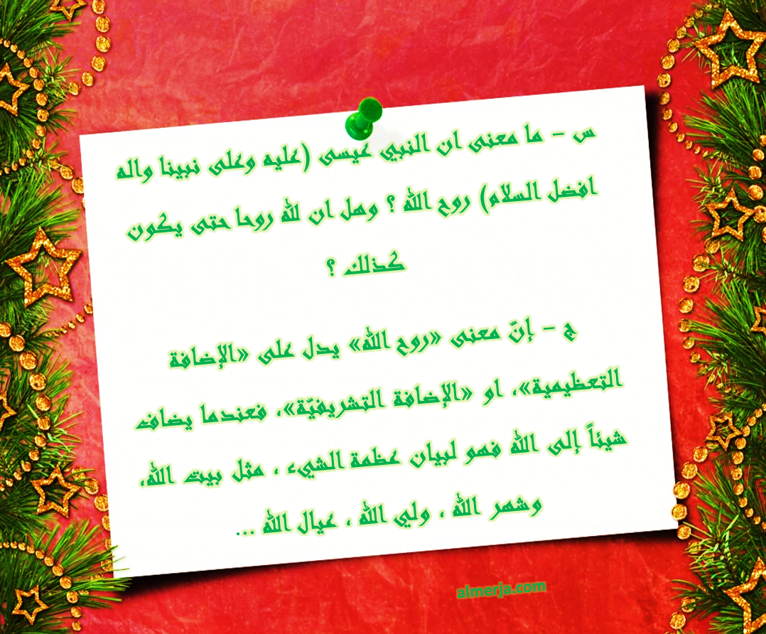 س - ما معنى ان النبي عيسى (عليه وعلى نبينا واله افضل السلام) روح الله ؟ وهل ان لله روحا حتى يكون كذلك ؟