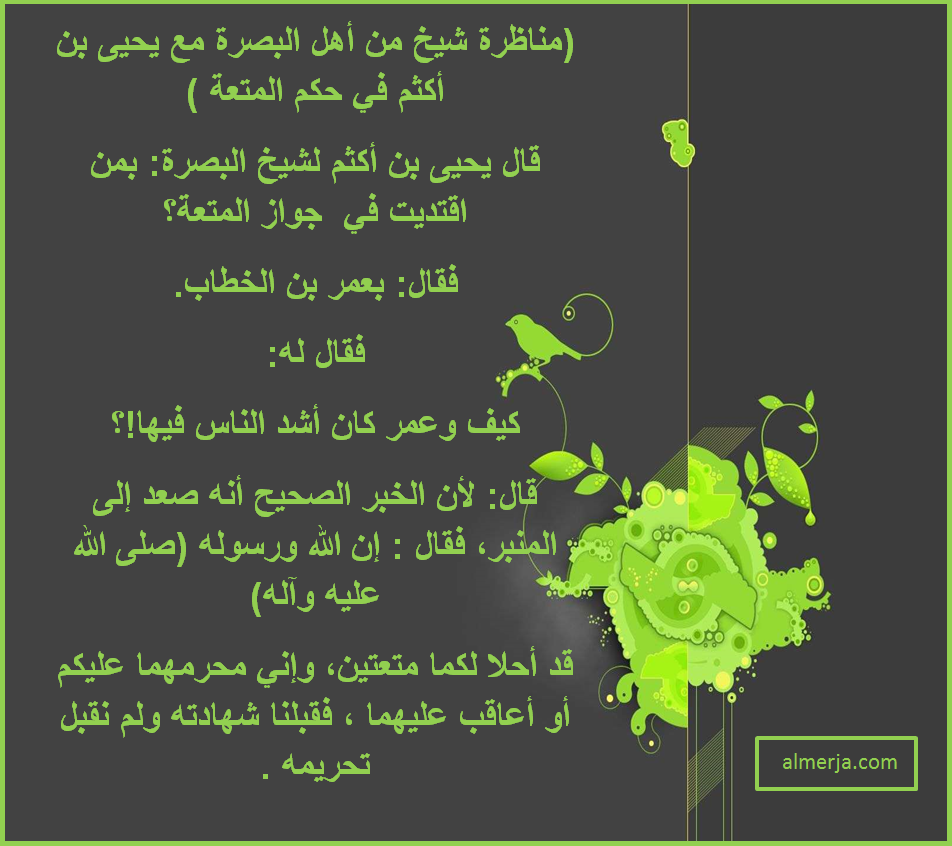 مناظرة شيخ من أهل البصرة مع يحيى بن أكثم في حكم المتعة |||