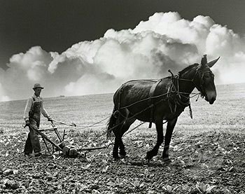 The farm mule left the farms about the same time as draft mules left the Army, and for the same reason - - the combustion engine. But, during World War II, civilians faced gas rationing, so farmers reintroduced their reliable farm mule.
