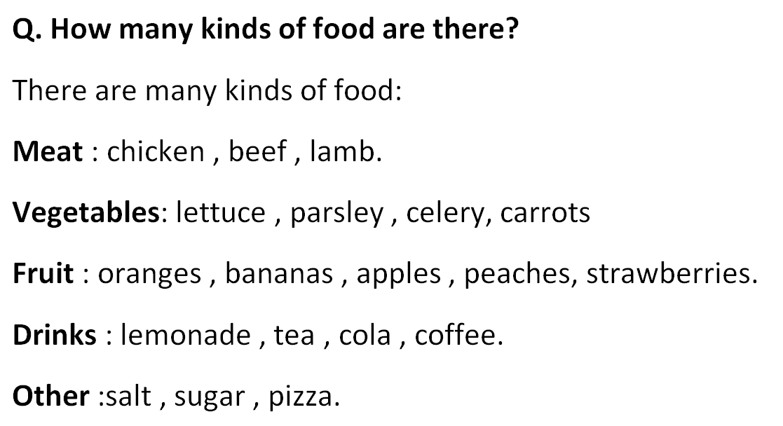 Q. Write about your kinds of food. Food Habits