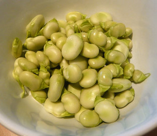 Peeled fava beans can be steamed and tossed in olive oil and seasonings to be eaten whole, or smashed to be eaten on top of bread or in other dishes.