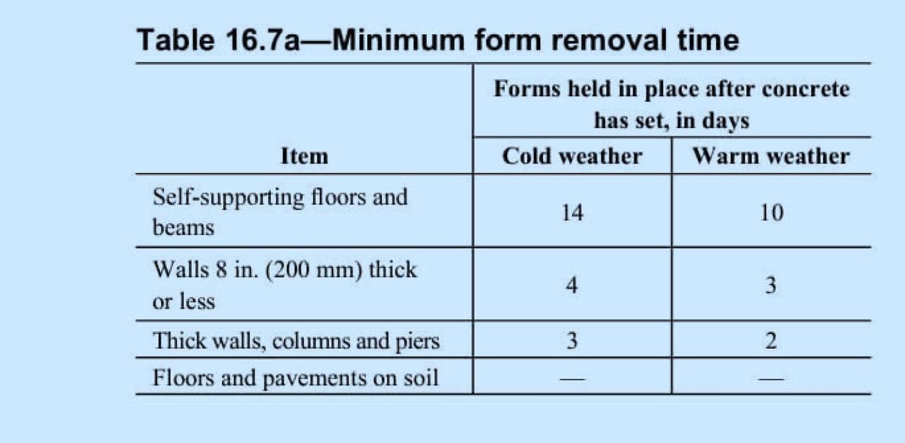 المدة الزمنية لفك القالب الخشبي وفق الكود ...