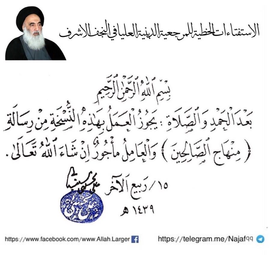 الطبعة المصححة والمنقّحة لمنهاج الصالحين لسماحة المرجع الأعلى السيد السيستاني دام ظله (١٤٣٩ هـ)