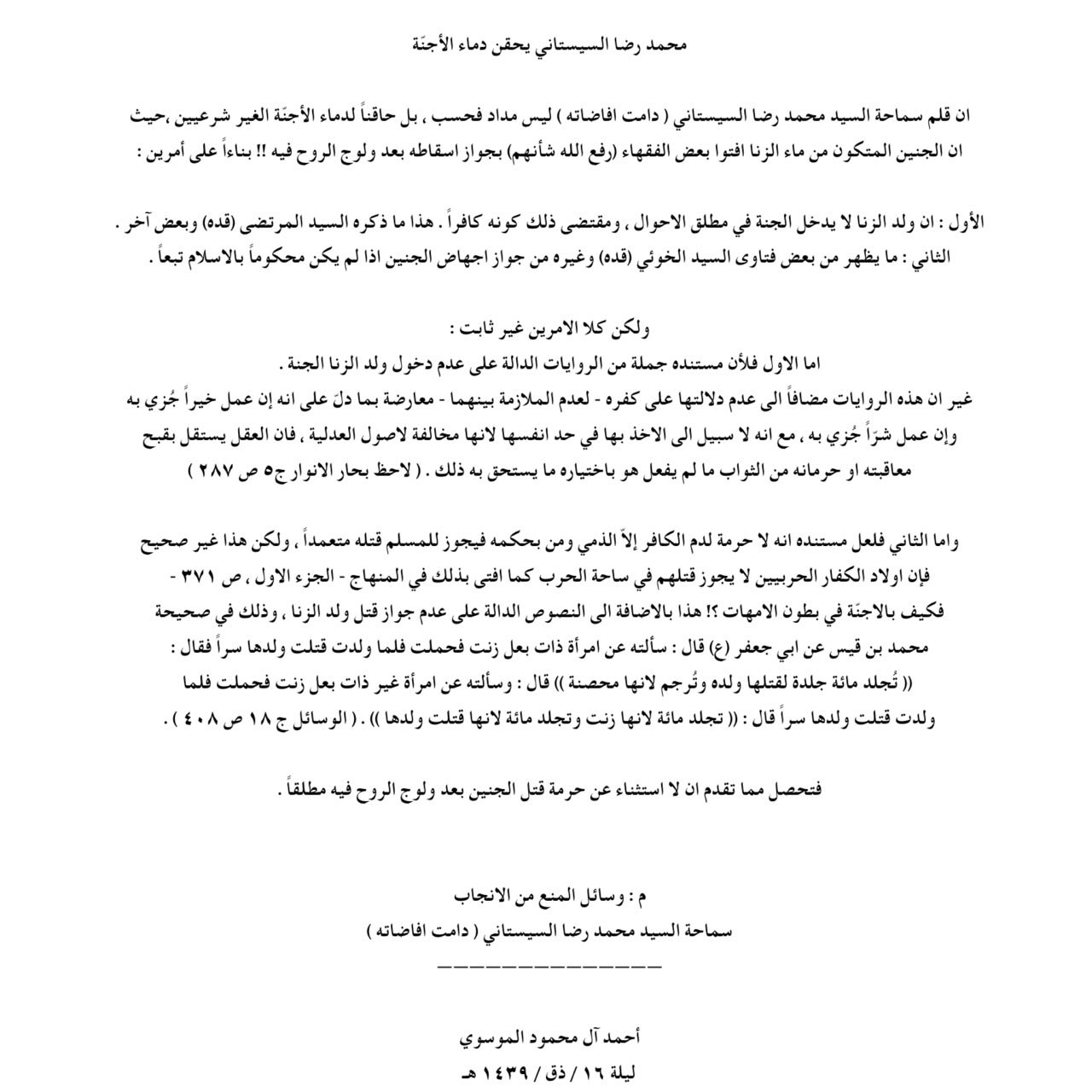 محمد رضا السيستاني يحقن دماء الأجنّة
