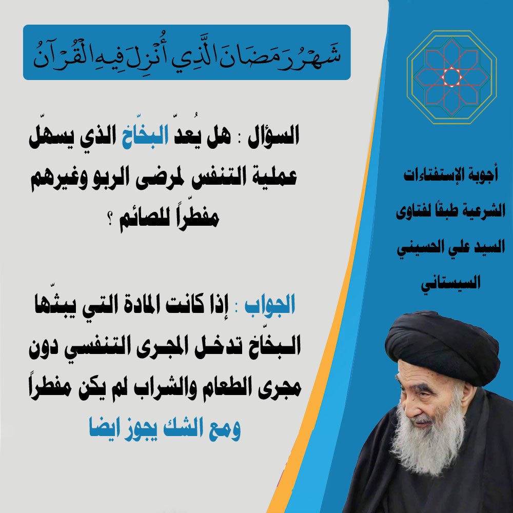 السؤال : هل يُعدّ البخّاخ الذي يسهّل عملية التنفس لمرضى الربو وغيرهم مفطّراً للصائم ؟