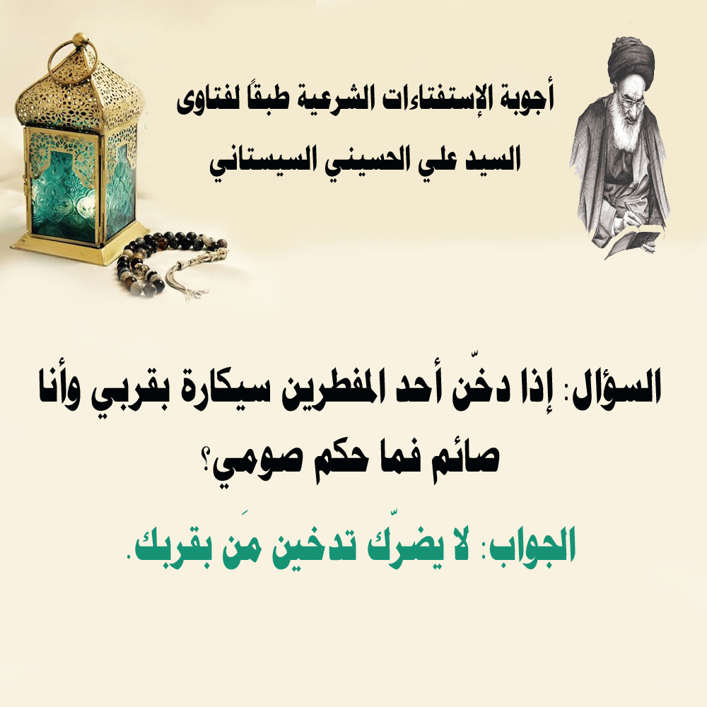 السؤال: إذا دخّن أحد المفطرين سيكارة بقربي وأنا صائم فما حكم صومي؟