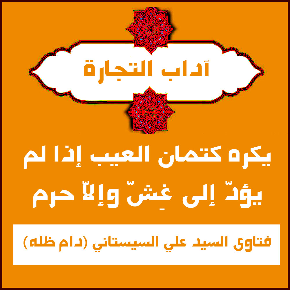 يكره البيع في المكان الذي يستتر فيه العيب /// أجوبة الإستفتاءات الشرعية طبقاً لفتاوى السيد علي الحسيني السيستاني (دام ظله) .