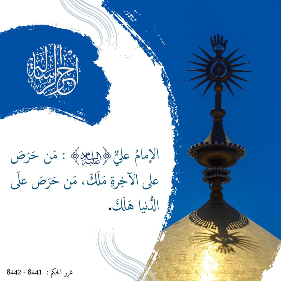 مَن حَرَصَ على الآخِرةِ مَلَكَ ، مَن حَرَصَ علَى الدُّنيا هَلَكَ . //