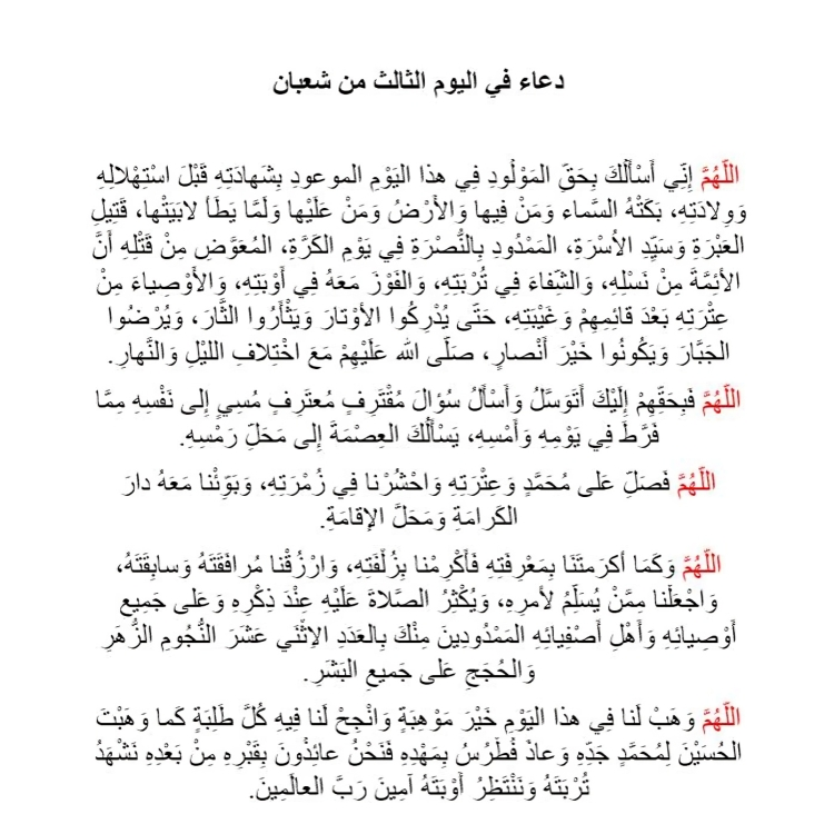 ((يا مَنْ ذِكْرُهُ شَرَفٌ لِلذَّاكِرِينَ وَيَا مَنْ شُكْرُهُ فَوْزٌ لِلشَّاكِرِينَ، وَيَا مَنْ طَاعَتُهُ نَجَاةٌ لِلْمُطِيعِينَ، صَلِّ عَلَى مُحَمَّد وَآلِهِ وَاشْغَلْ قُلُوبَنَا بِذِكْرِكَ عَنْ كُلِّ ذِكْر، وَأَلْسِنَتَنَا بِشُكْرِكَ عَنْ كُلِّ شُكْر وَجَوَارِحَنَا بِطَاعَتِكَ عَنْ كُلِّ طَاعَة)).