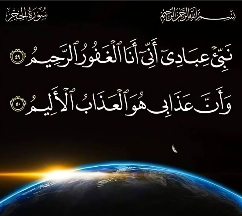 قال تعالى: {نَبِّئْ عِبَادِي أَنِّي أَنَا الْغَفُورُ الرَّحِيمُ * وَأَنَّ عَذَابِي هُوَ الْعَذَابُ الْأَلِيمُ} [الحجر: 49، 50].