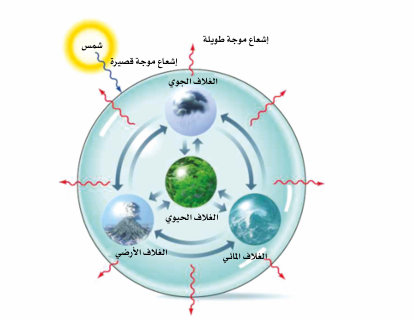 يتشكل النظام الأرضي من خلال تفاعل الأغلفة الجوية والمائية والحيوية والأرضية مع بعضها ومنها :ـ
