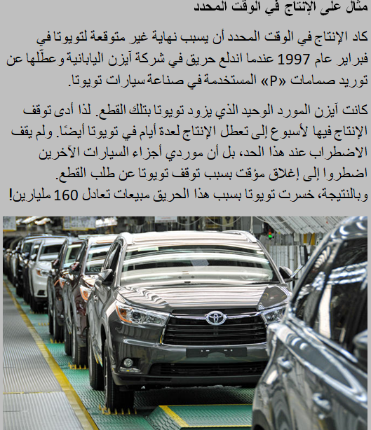 تشتهر تويوتا بتطبيقها نظام الإنتاج في الوقت المحدد،