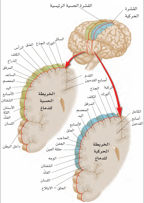 | ويلاحظ أن حجم التمثيل القشري لا يتناسب | ![]() |