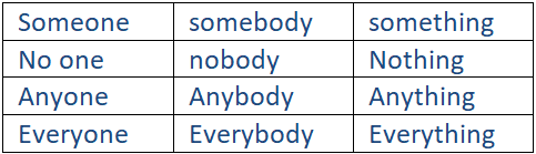 The indefinite pronouns are used when you do not know or do not need to say precisely who or what you are referring to. The noun phrase which they substitute for can refer to a person, a thing, or a group of people or things, in which gender and number are not made clear.