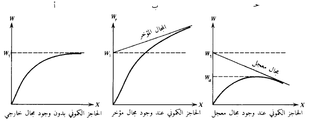 بكل من المجال المؤخر والمجال المعجل. فعندما يكون المجال مؤخراً (أي أن جهد الكاثود موجباً بالنسبة لأي قطب آخر قريب) يزداد الحاجز الكموني إلى القيمة Wr (شكل 1 ب) وبذلك لا يمكن أن تنبعث سوى الإلكترونات التي تزيد طاقتها عن Wr . أما إذا كان المجال الخارجي معجلاً (أي أن جهد الكاثود سالباً بالنسبة لأي قطب آخر قريب) ينخفض الحاجز الكموني إلى القيمة Wa (شكل 1 ج) ويمكن أن تنبعث أي إلكترونات تزيد طاقتها عن Wa. وتعرف زيادة الإنبعاث الإلكتروني بتأثير المجال المعجل بإسم ظاهرة شوتكي .