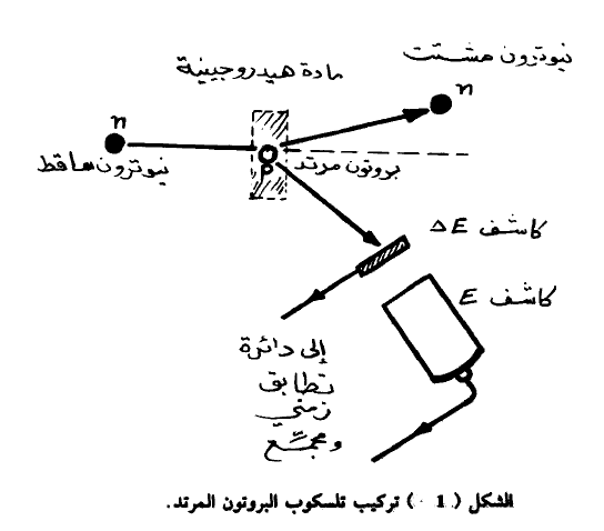 يبين الشكل (1) تركيب تلسكوب البروتون المرتد. حيث نجد أنه يمكن تغيير زاوية رؤية كاشف البروتونات (θ) ومن ثم تعيين طاقة النيوترون.