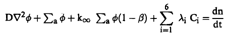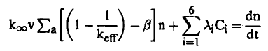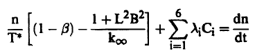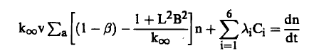 نجد أننا سنعتبر هنا أن dn/dt لا تساوي صفراً، وحيث أننا سنهتم بتغير كثافة النيوترونات بالنسبة للزمن أو حيث أنه يوجد لدينا مجموعتين من النيوترونات الناتجة عن الانشطار وهما: النيوترونات اللحظية Prompt والنيوترونات المتأخرة Delayed فإنه علينا أن تأخذ هاتين المجموعتين الآن في الاعتبار. لنفترض أن نسبة النيوترونات المتأخرة في النيوترونات الانشطارية هي وبالتالي فإن عدد النيوترونات اللحظية هي (β - 1) ويكون معدل إنتاج هذه النيوترونات هو: K∞ ∑a ∅ (β - 1) أما معدل إنتاج النيوترونات المتأخرة فيمكن حسابة بمعرفة ثابت التحلل الإشعاعي (λ) لشظايا الانشطار التي تقوم بإطلاق هذه النيوترونات ومعدل تركيزاتها (C). وحيث أن لدينا ستة مجموعات من هذه النيوترونات المتأخرة فإن معدل إنتاج هذه النيوترونات الكلي (nd (tot يعطي بالعلاقة :
