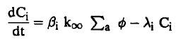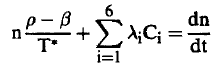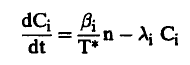 حيث و نسبة النيوترونات المتأخرة الناتجة عن النواة (أ) من النيوترونات الانشطارية التي معدل إنتاجها هو ∅ K∞ ∑a (كما بينا سابقا). وحسب قوانين النشاط الإشعاعي فإن معدل تكون النواة (i) المشعة للنيوترون dCi/dt يعطي بالعلاقة:
