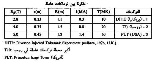 لقد بنيت عدة محطات تعتمد مبدأ التوكاماك في أنحاء متفرقة من العالم، نبين مقارنة بين ثلاث منها في الجدول (1).