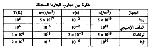 أي حوالي ميجاوات لكل متر مكعب. ومن ثم فإذا كنا نخطط لبناء محطة قدرتها 100 ميجاوات فإنه يلزمنا حجماً من البلازما قدره m3100 .