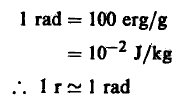 تقاس جرعة إشعاع γ أو أشعة X المعرض لها الإنسان بوحدة هي الرونتجن (r) والتي تعرف على أنها: كمية أشعة X أو أشعة γ التي تنتج كمية من الشحنة قدرها 4-10 × 2.58 كولوم/كيلوجرام من الهواء الموجود عند معدل الضغط ودرجة الحرارة، وبأجراء حسبة بسيطة نستطيع أن نبين أن تعرض الهواء لرونتجن واحد من الإشعاع الكهرومغناطيسي يؤدي إلى امتصاص لكمية من الطاقة قدرها 2-10 × 0.87 جول لكل كيلوجرام، أي أن: