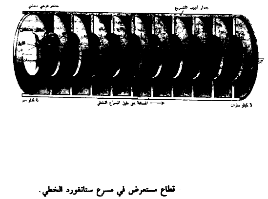 ستانغورد الخطي. يبين هذا الشكل أيضاً عملية إمتطاء الإلكترونات لموجة كهرومغناطيسية. لاحظ هنا وجود ذيل لحزمة (نبضة) الإلكترونات المسرعة وذلك بفعل الحقل المتخلف وينتج ذلك عن الإلكترونات نفسها التي تحرض حقولاً الكتروستاتيكية في جدران أنبوب المرع فتعمل هذه الحقول بدورها على التشويش على الكترونات ذيل الحزمة أما إذا تحركت الحزمة على محور الأنبوب بالضبط فإن مفعول الحقل المتخلف يبطل نفسه وذلك بسبب التناظر أما إذا لم تكن الحزمة على المحور فإن المفعول يبعد الذيل عن بقية الحزمة.