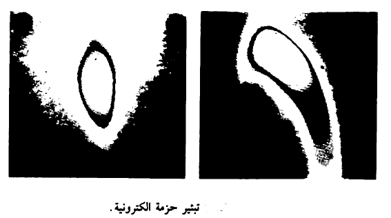 نبين في الشكل (2) صورتين تلفازيتين لمقطعين عرضيين لحزمتين إحداهما جيدة التبئير (إلى اليسار) والأخرى رديئة التبئير (إلى اليمين) وذلك بسبب مفعول التخلف. ويبلغ قطر الحزمة 250 ميكرون. ويمكن التحكم في تأثير الحقل المتخلف عن طريق محاولات التجربة والخطأ بحيث نستطيع في النهاية أن نوجه حزمة الشعاع بحيث يصبح هذا التأثير أقل ما يمكن.