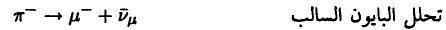أما التفاعلات الثلاثة الأولى فبيناها بالتفصيل وهي خاصة بتحلل (β). يتضح من هذه التفاعلات الخاصة بتحلل β وتلك الخاصة بتحلل البايونات (معادلات 1، 2) أن هناك نوعان من النيوترينات أحدهما خاص بالإلكترونات وينطلق معها (في تحلل β، والآخر خاص بالميونات وينطلق معها (في تحلل البايونات) أما المعادلة (3) فتبين تحلل الميونات إلى الكترونات وينطلق نوعاً النيوترينات. فإذا كان هاذان النوعان متطابقان (Identical) فإن على أحدهما أن يتلاشى مع الآخر باعتبار أن أحدهما الجسيم والآخر ضديده، ومن ثم ينطلق إشعاع γ وبالتالي فإن التفاعل (3) يأخذ الشكل التالي: