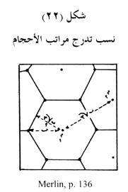 ومع زيادة أحجام هذه المراكز البشرية لا بد أن تقل أعدادها، ويزداد التباعد بينها ، وتتسع المناطق التابعة التي تخدمها. وهكذا يدخل الحجم ضابطاً للتباعد، فكل مركز من المراكز الهامة سيكون محاطاً على هوامش منطقته الريفية بست من المراكز الأقل أهمية، وذلك على أبعاد متساوية (شكل 20- و).