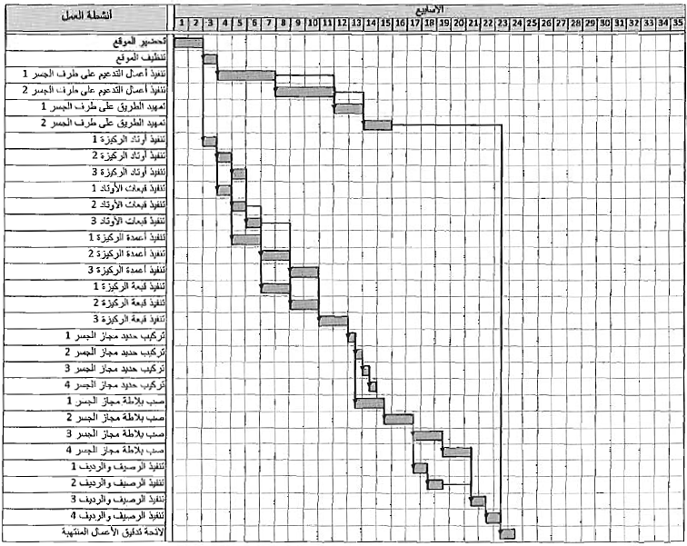 شكل 1 مخطط شريطي تفصيلي لمشروع انشاء الجسر