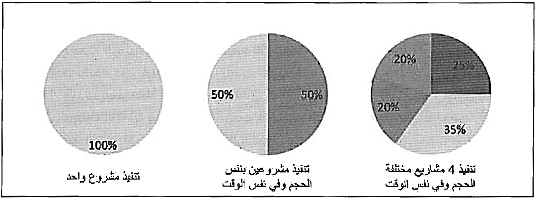 شكل (1) توزيع النفقات العامة لمكتب المقاول على المشاريع قيد التنفيذ.