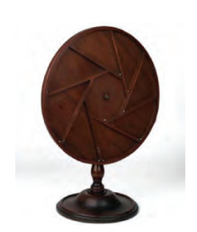 نموذج ضخم صُنع في أمريكا، يتهيأ للناس أن الكرات الثقيلة المتدحرجة هي التي تُحدث الخلل في التوازن وتجعل العجلة تدور، لكن تبيَّن أنه يُوجَد آلة أخرى تدير المحور المركزي للعجلة. (مصدر الصورة والتعليق إسماعيل محمد طوسون، نماذج مثيرة لمحاولات الإنسان الأولى لإنتاج الطاقة من العدم، ص15.)