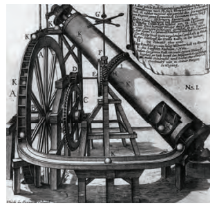 أحد المحركات التي تم اختراعها عام 1634م من قِبَل شخص مجهول. (مصدر الصورة: لانداو، ل. وكيتايجورودسكي، أ، الفيزياء للجميع، ص116.)