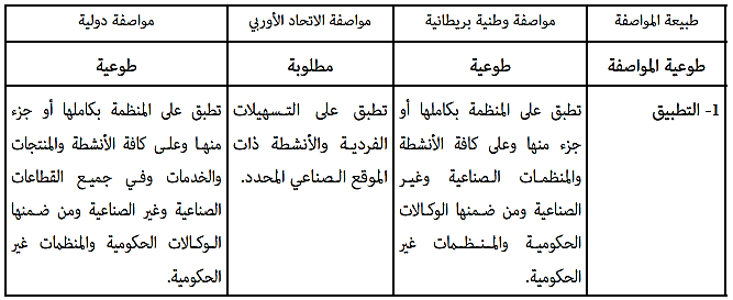 مقارنة بين المواصفات الرئيسية لإدارة البيئة
