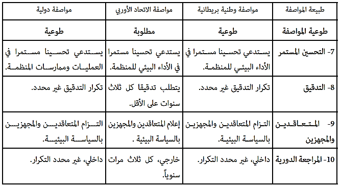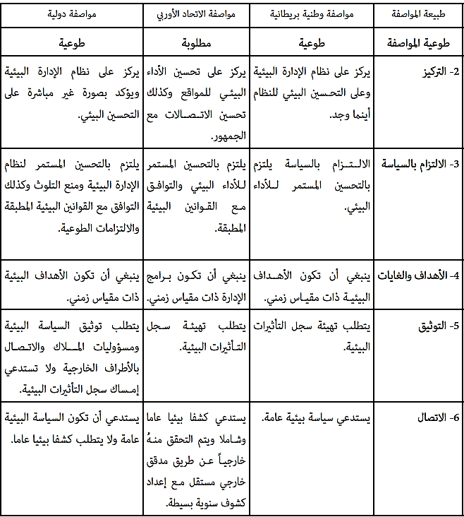 والجدول التالي رقم (4) يوضح مقارنة بين المواصفات الرئيسية لإدارة البيئة: