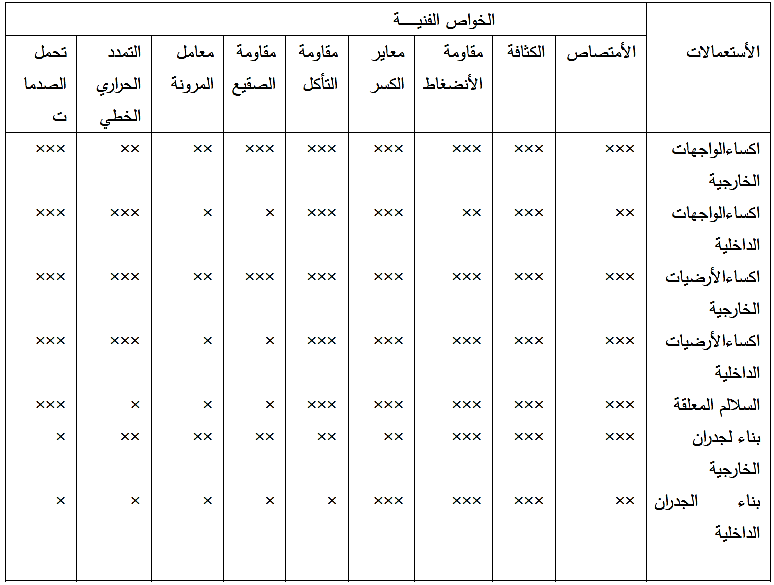 لأغراض تحديد خواص الحجر الطبيعي الفنية وأهميتها تبعا لحالات الأستعمال يستخدم الجدول رقم ( 16 ) لهذا الغرض