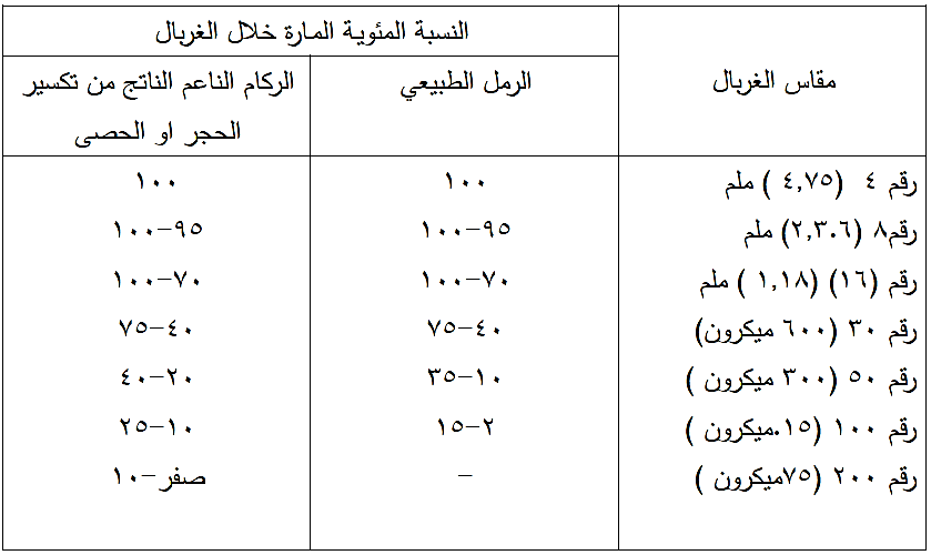 تدرج الركام الناعم (الرمل)المستعمل في ملاط الاسمنت