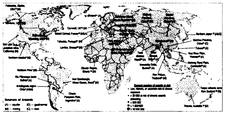 تعد مشكلة تلوث مياه الآبار الجوفية بمركبات المواد العضوية السامة، وعناصر الفلزات الثقيلة المسرطنة، التي يأتي على رأس قائمتها عنصر الزرنيخ ومركباته، أبرز المشاكل والتحديات البيئية التي يواجهها العالم اليوم وكما يؤكد الشكل (11 – 1)، فإن مشكلة تلوث المياه الجوفية لا تخص فقط بلدان العالم الأقل نموا مثل بنغلادش ونيبال وحدهما، ولكنها تعد مشكلة عالمية تضرب البلدان المتحولة مثل الصين والهند والنامية مثل الأرجنتين والبرازيل. كما يمتد كذلك أثر هذه المشكلة ليشمل عددا كبيرا من بلدان العالم الصناعي المتقدم مثل بعض دول أوروبا وأستراليا. وتتجسد هذه المشكلة بشكل مفزع في الولايات المتحدة الأمريكية، حيث يعتمد نحو 50 في المائة من السكان على طبقات المياه الجوفية الطبيعية لتوفير احتياجاتهم اليومية من المياه العذبة. وكما هو مبين بالشكل (11 – 1) فإن المياه الجوفية الموجودة في عدة مناطق بالولايات الواقعة قرب الساحل الأمريكي الغربي يرتفع تركيز عنصر الخارصين فيها عن مستوى 200 ألف ميكروغرام في اللتر الواحد! ومن المؤسف ذكره، أن محاولة تنقية هذه المياه باستخدام الطرق التقليدية لفصل عناصر الفلزات الثقيلة أو المركبات العضوية السامة عنها، تعد عملية معقدة باهظة التكاليف حيث يحتاج تنفيذها إلى عدة مئات المليارات من الدولارات، هذا علاوة على طول الفترة الزمنية التي تحتاج إليها، والتي قد تمتد إلى سنوات وعقود عديدة.
