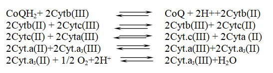 ويكون عملها متسلسلا حيث تحتوي على مجموعات مرتبطة بحديد-بورفايرين (Iron-Prophyrin) وبهذا فهي تشابه الهيموكلوبين Hemoglobin والمايوكلوبين Myoglobin. توجد السايتوكرومات في جميع الانسجة وخاصة ذوات الفعالية التنفسية العالية مثل القلب والعضلات . تصنف مركبات البورفايرين استنادا الى مكونات السلسلة الجانبية . حيث يكون تسلسل السايتوكرومات في السلسلة التنفسية على الوجه التالي :