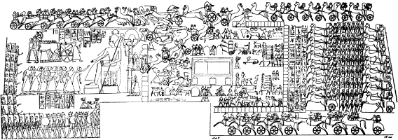 شكل 1: منظر معسكر موقعة قادش كما صوِّر على جدار بوابة معبد الأقصر.