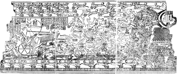 شكل 1: منظر موقعة قادش كما صوِّر على جدار البوابة الثانية لمعبد الرمسيوم.