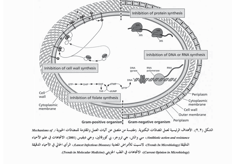 الأهداف التي تصيبها المضادات الحيوية في البكتيريا
