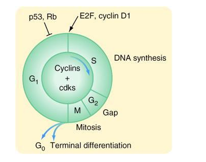 إن العوامل الأساسية في هذا التنظيم هي مجموعة كيناز - السيرين – التريونين التي تعرف باسم الكيناز المعتمدة على السايكلين (cyclin-dependent kinases) (CDKs) و هذا يؤكد على أهمية تنظيم الدورة الخلوية في الوقاية من السرطان عند الإنسان.