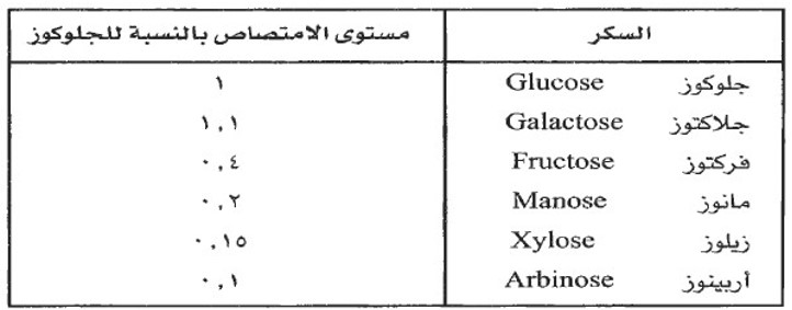 يجب على مرضى السكري عدم الإفراط في تناول الأغذية الغنية بالسكريات البسيطة كالجلوكوز والفركتوز والسكروز وغيرها، نظراً لأن هذه الأغذية تسبب ارتفاعاً لمستوى جلوكوز الدم Hyper glycemia والإصابة بالسمنة. بمعنى آخر يمكن لمريض السكري تناول الأغذية السكرية بحذر وتعقل بحيث تتلاءم مع احتياجاته اليومية. كما أن الاعتدال في تناول بعض السكريات كالسوربيتول Sorbitol والمانيتول Mannitol والاكزيليتول Xylitol قد لا يحدث مشاكل لمرضى السكري. وبشكل عام يعد سكر الفركتوز Fructose (سكر الفاكهة) أفضل لمرضى السكري من سكر المائدة المعروف (سكر السكروز Sucrose)؛ لأنه لا يحتاج إلى الأنسولين أثناء عملية الهضم، بالإضافة إلى أن حلاوته أكثر، ويحدث ارتفاعاً أقل في مستوى سكر الدم؛ لأن معدل امتصاصه أقل من الجلوكوز (جدول رقم (11ــ1). يُقدر المؤشر السكري Glycemic Index (أو معامل رفع السكر في الدم) لسكر الفركتوز بحوالي 20% من سكر الجلوكوز و 33% من سكر السكروز لدى الأشخاص المصابين بمرض السكري من النوع الأول أو الثاني؛ لهذا فإن استعمال مرضى السكري للفركتوز بدلاً من الجلوكوز والسكروز في الطعام يخفض من مستوى الجلوكوز في الدم لدى مرضى السكري من النوع الأول والنوع الثاني، بمعنى آخر أن سكر الفركتوز (الفاكهة) لا يُحدث ارتفاعاً كبيراً في مستوى سكر الدم؛ لأن معدل امتصاصه منخفض، بالإضافة إلى أنه يجب أن يتحول في الكبد إلى جلوكوز حتى يمكن امتصاصه في الجسم ليذهب إلى الدم. ولقد أوضحت الأبحاث أن سكر الفركتوز يحسن من استجابة الخلايا للأنسولين بنسبة 35% لدى مرضى السكري من النوع الثاني، والجدير بالذكر أن تأثير الاستعمال الطويل لسكر الفركتوز على مرضى السكري غير واضحة حتى الوقت الحاضر.