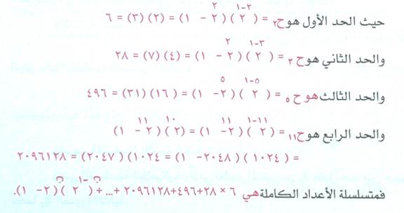 والحد الثالث هو 496 لأن 496 = 1 +2+4+8+16+31+62+124+248
