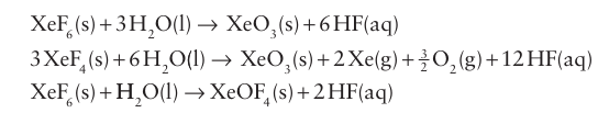Key point: The xenon oxides are unstable and highly explosive. Xenon oxides are endergonic (ΔfGO>0) and cannot be pre pared by direct interaction of the elements. The oxides and oxo fluorides are prepared by the hydrolysis of xenon fluorides: