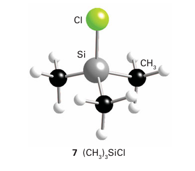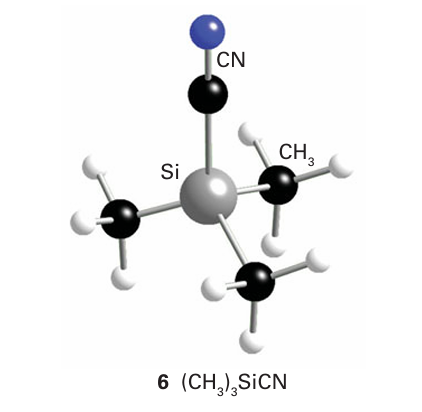 The anion formally derived from a pseudohalogen is called a pseudohalide ion. An example is the cyanide anion, CN. Cova lent pseudohalides similar to the covalent halides of the p-block elements are also common. They are often structurally similar to the corresponding covalent halides (compare (6) and (7)), and undergo similar metathesis reactions. As with all analogies, the concepts of pseudohalogen and pseudohalide have many limitations. For example, pseudo halogen ions are not spherical, so the structures of their ionic compounds often differ: NaCl is fcc but NaCN is similar to CaC2 (Section 11.12). The pseudohalogens are generally less