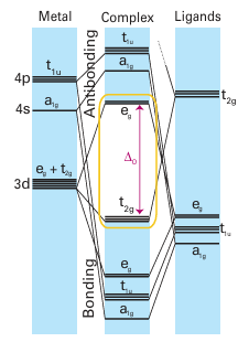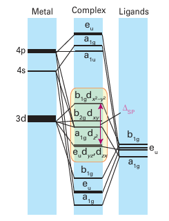 Figure 22.1 The energy levels of the d orbitals of an octahedral complex with strong-field ligands.