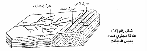1- أنماط التصريف حسب ميل الطبقات ، وتنقسم إلى عدة أنواع منها ما يأتي: